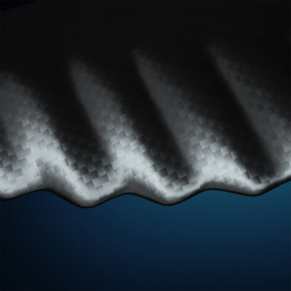 L’aile avant Takuma Kujira reproduit les tubercules similaires à ceux trouvés sur les nageoires des baleines. Ces ailettes génèrent de la portance en créant des tourbillons dans l’eau, ce qui leur permet d’aller vite tout en gardant le contrôle. Elles rendent le foil plus efficace en terme de glisse et de portance, et en améliorent le confort.