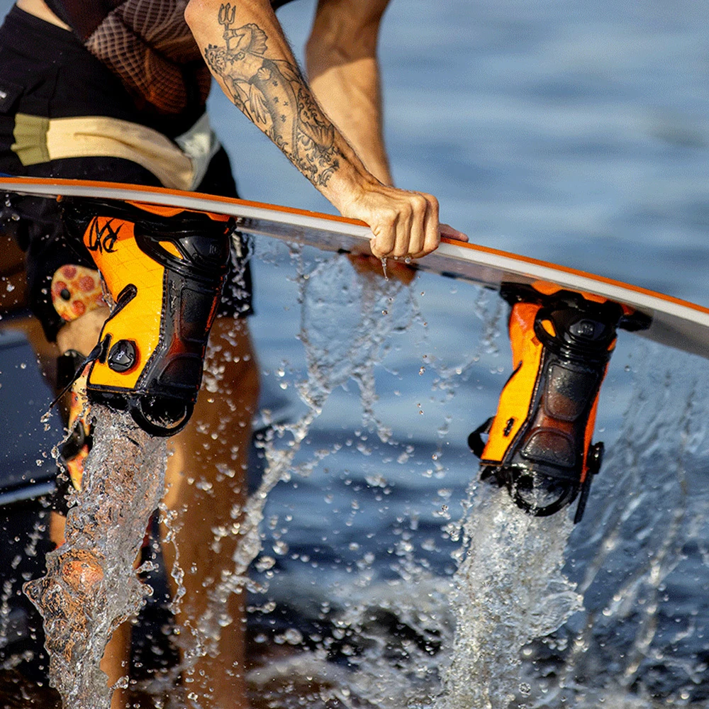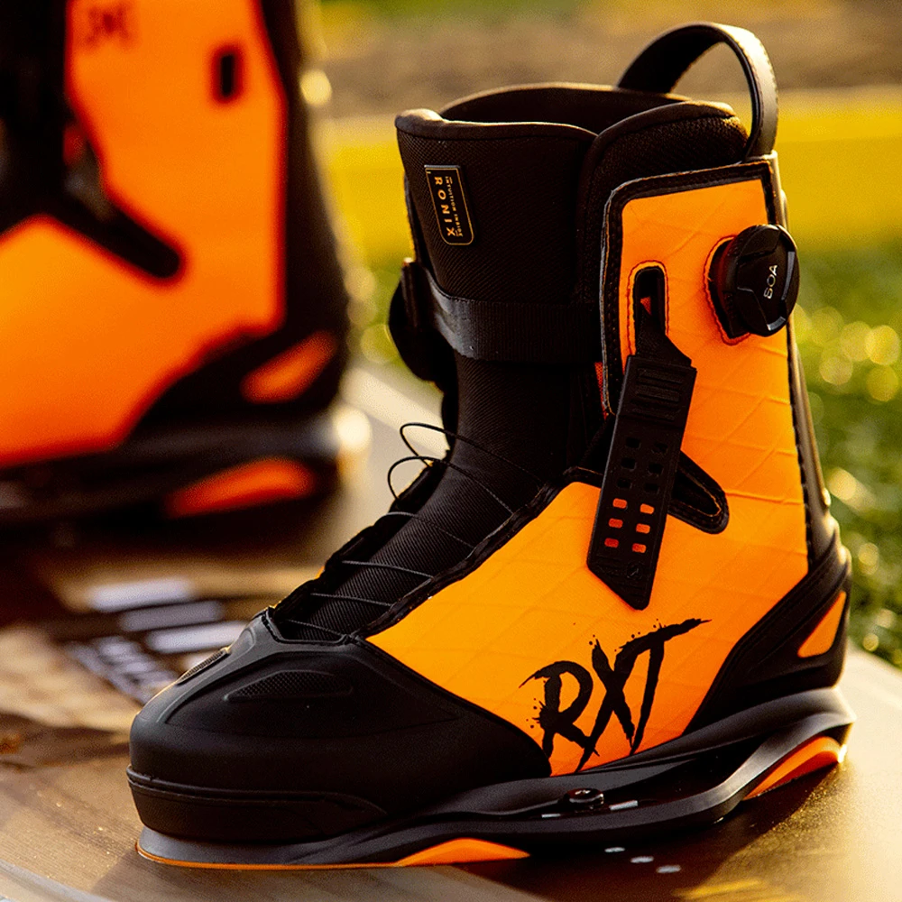 Pensée et développée pour offrir le meilleur maintien possible, la chausse de wakeboard RXT Boa de chez Ronix, revient en cette année 2023, avec un nouveau design explosif ! La RXT Boa est construite avec une toile composite orange vif, X-Pac, qui délivrera une grande flexibilité, sans pour autant sacrifier sa durabilité. Elle embarque la technologie exclusif Intuition+ Thermoformable, qui permet de profiter d’une chausse parfaitement adaptée à la morphologie de votre pied. Le pieds est ainsi parfaitement maintenu dans la chausse.La RXT Boa également équipée du BOA® Fit System et du SuperStrap sur la partie supérieure, qui permet d’ajuster rapidement et idéalement la chausse à votre pied. Une fine semelle caoutchoutée sous cette armature empêcher de marquer la board au fil des sessions. La chausse RXT Boa est ainsi pensée pour vous offrir une sensation de maintien ferme, sans pour autant ressentir un point de pression désagréable !