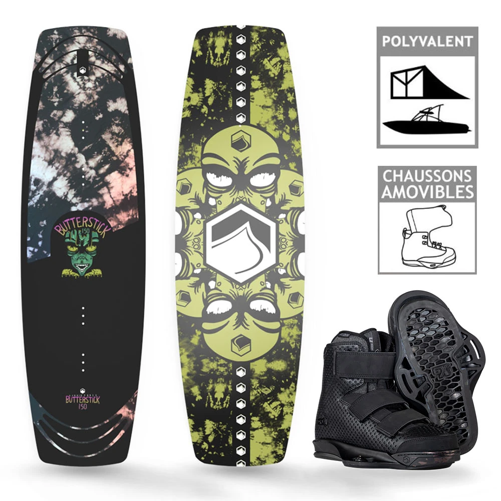 Livré prêt à aller sur l’eau avec une planche Liquid Force Butterstick 2023 ainsi qu’une paire de chausses Liquid Force Hook 6X 2023