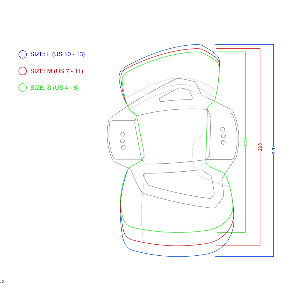 3 tailles dans le coussinet et la sangle permettent de s’adapter à une gamme beaucoup plus large de tailles de pieds.