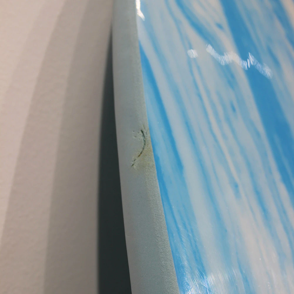 Lors du transport l’emballage a reçu un coup entrainant un accroc sur le le rail (Cf photo), il y aussi une bulle sur le pont d’environ 20cm de long sur 5cm. Vous pouvez la laisser ainsi ou la recoller aprés avois fait une incision. Cela n’altére en rien la solidité ni la qualité de glisse de la planche.