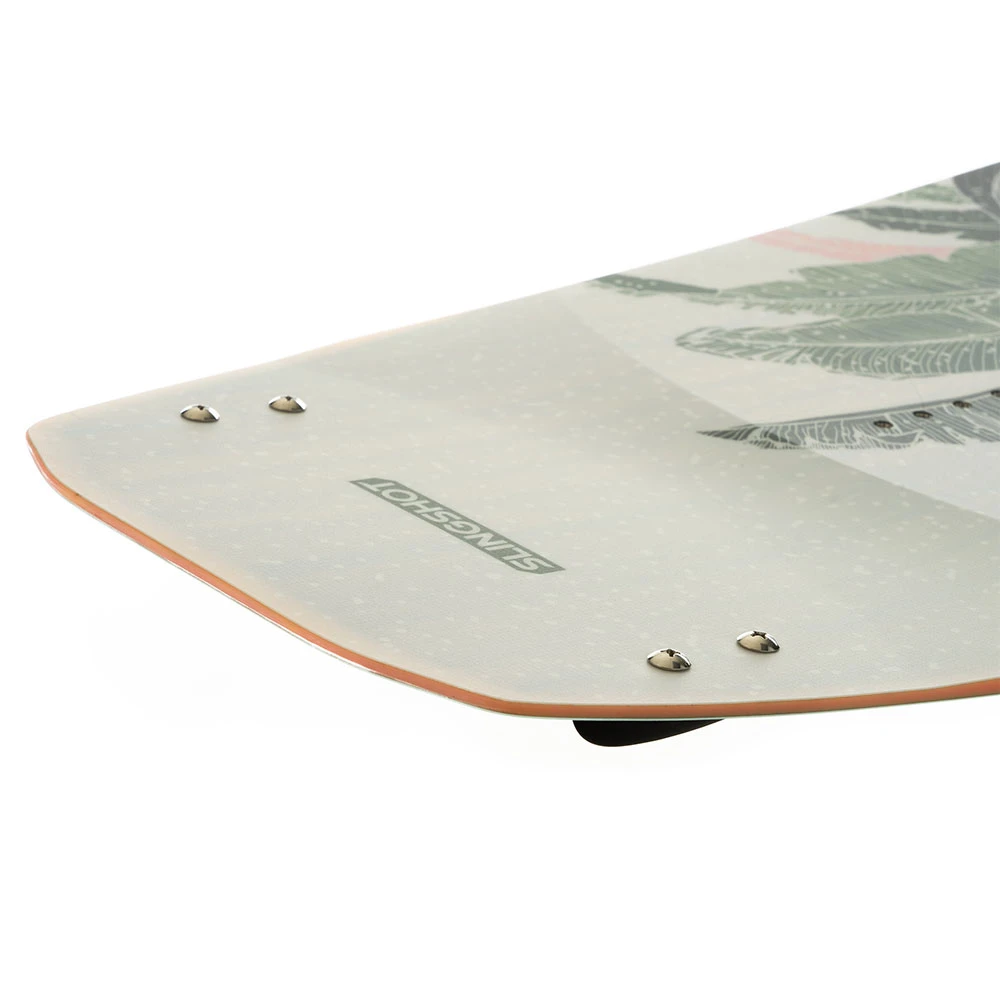 La construction du noyau en bois laminé verticalement est ce qui donne aux planches Slingshot leur fameuse saveur et leur flex.